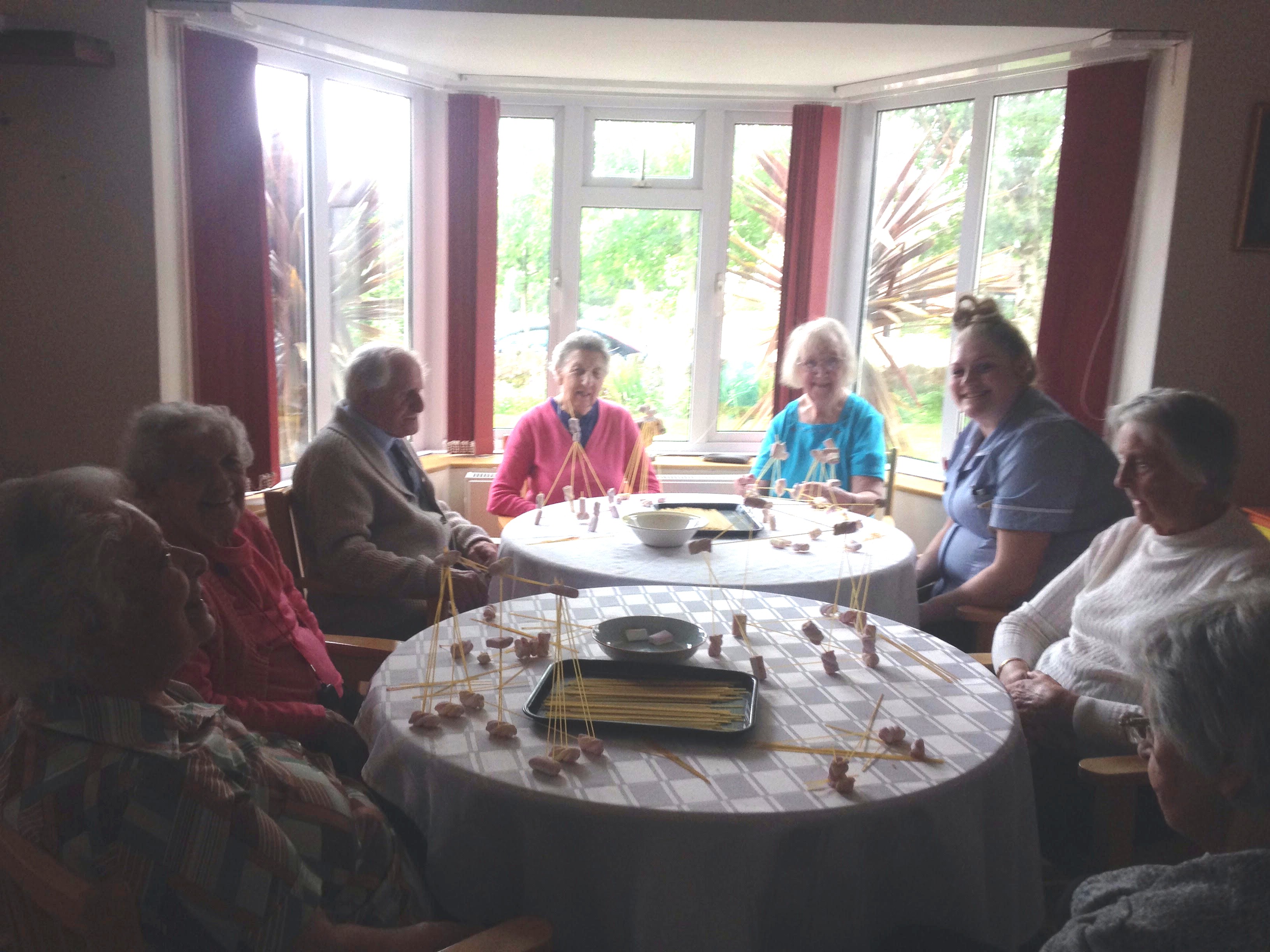 Hi everyone, I am the activities coordinator for Pelham House Care Home in Folkestone, I started a once a month residents vs carers challenge. Really simple games like pass the parcel, build a tower with spaghetti, eat fruit salad with a chocolate stick, toss a bag to a target on the lawn etc. It may only be something small once a month, but everyone is enjoying the interaction and enjoy having tea together after the event. Even though it is called a challenge, I make sure that everyone wins something little, a little chocolate or so.