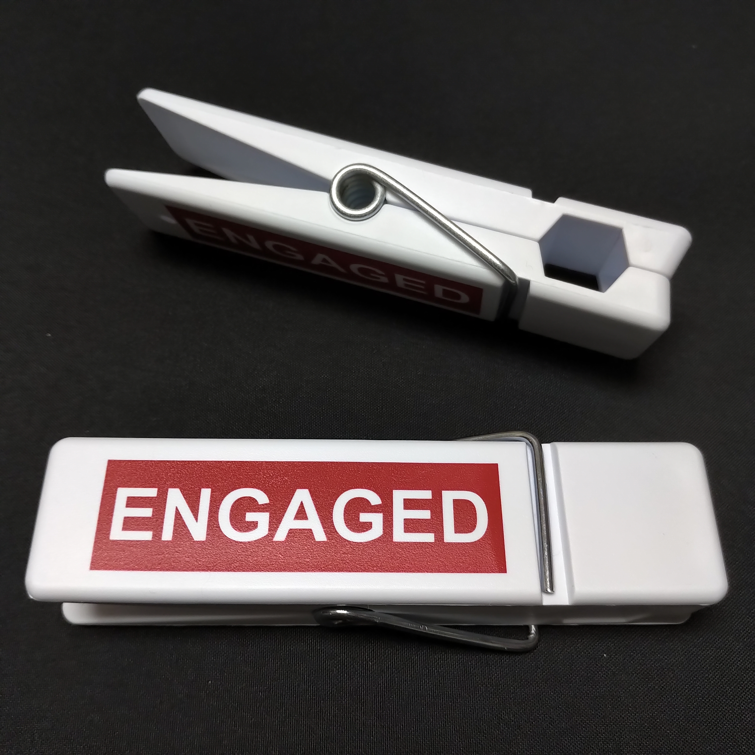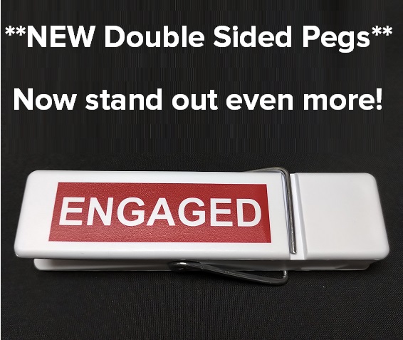 These pegs have now changed to White pegs with a solid Red print, they are also now double sided so more visible and easier to keep clean. Available from 50 units from stock.