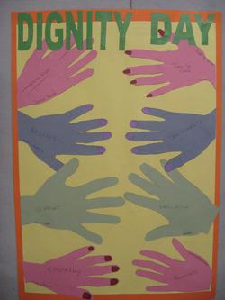 On the morning individuals were given the opportunity to to design a Dignity poster with the artist to provide a focal point for our display. Light refreshments were provided and individuals were able to discuss issues raised and what dignity actually meant to them.